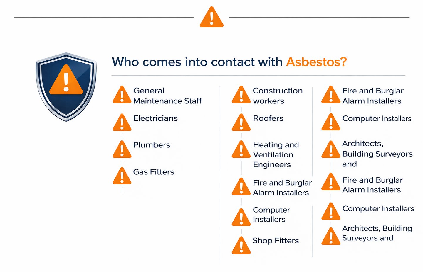 Asbestos awareness training is essential for anyone who may encounter asbestos in the workplace, including construction workers, maintenance personnel, and health and safety professionals. Understanding the risks associated with asbestos exposure helps prevent serious health problems and supports safer working practices. This training plays an important role in ensuring compliance with safety regulations, protecting employee wellbeing, and maintaining the responsibility of organisations operating in environments where asbestos may still be present.